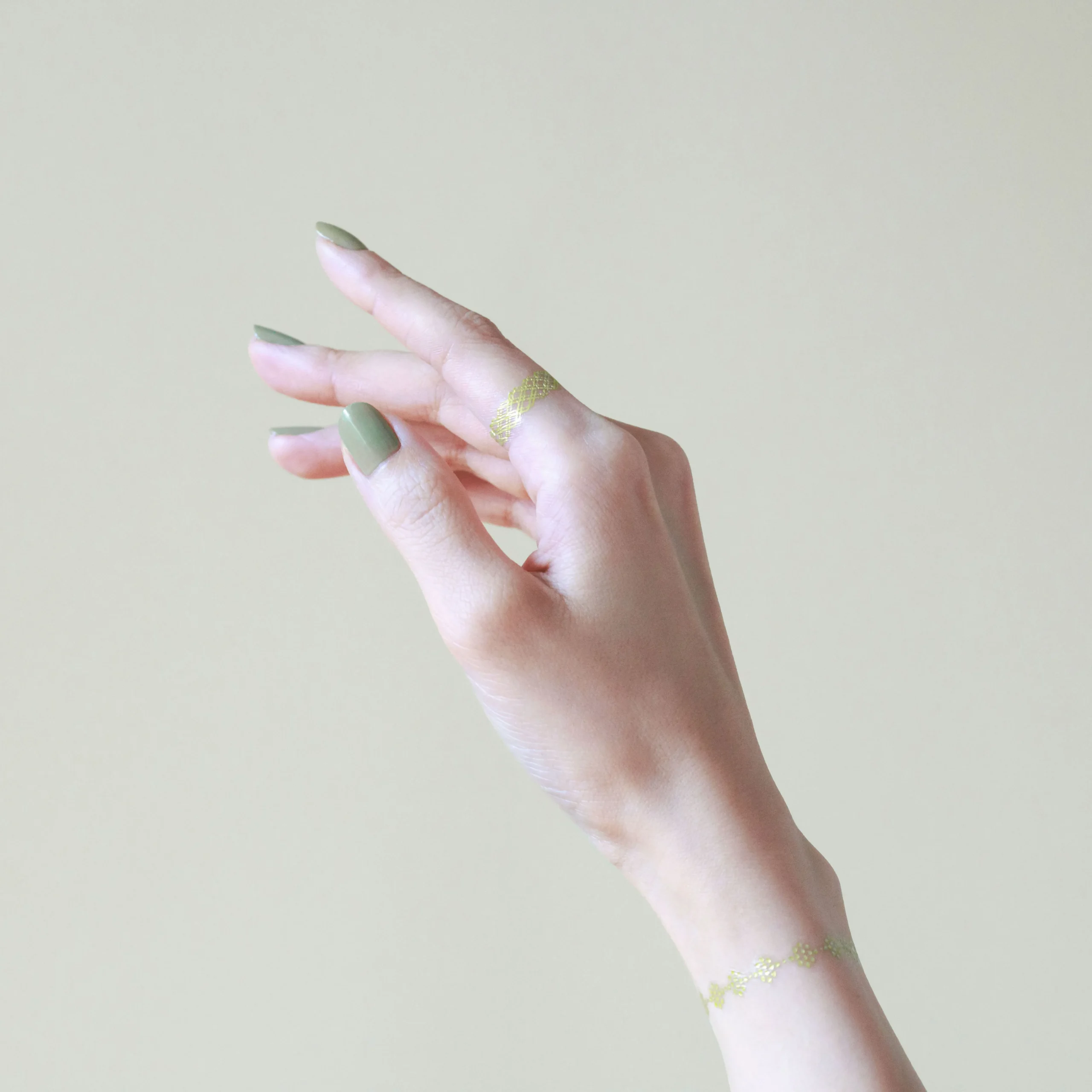- 約3分間乾燥させてください。3〜5日程度お楽しみ頂けます(個人差がございます)。落とす場合にはアルコールやベビーオイルでやさしく拭き取ります。