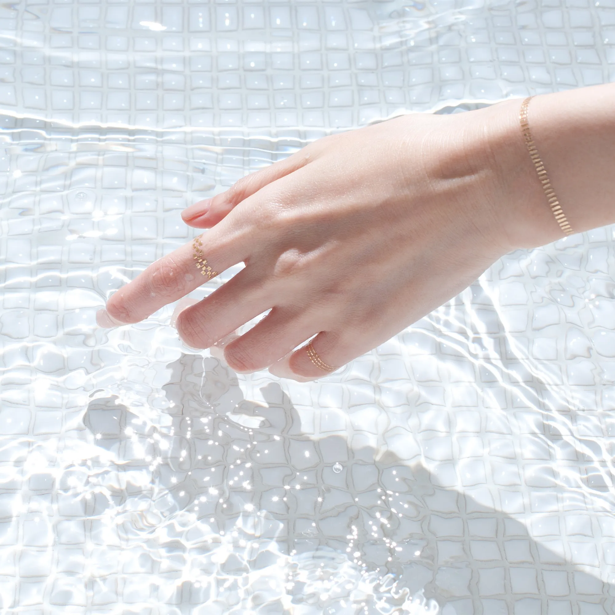 箔と水のアクセサリー HAQUAは、繊細でエレガントなデザインが特徴で、身につけると繊細なきらめきを放ちます。 シンプルなデザインは、ジュエリーの様に季節を問わずオールシーズン使え 優しい色合いと大人の輝きで質の良さが感じられるゴールドです。