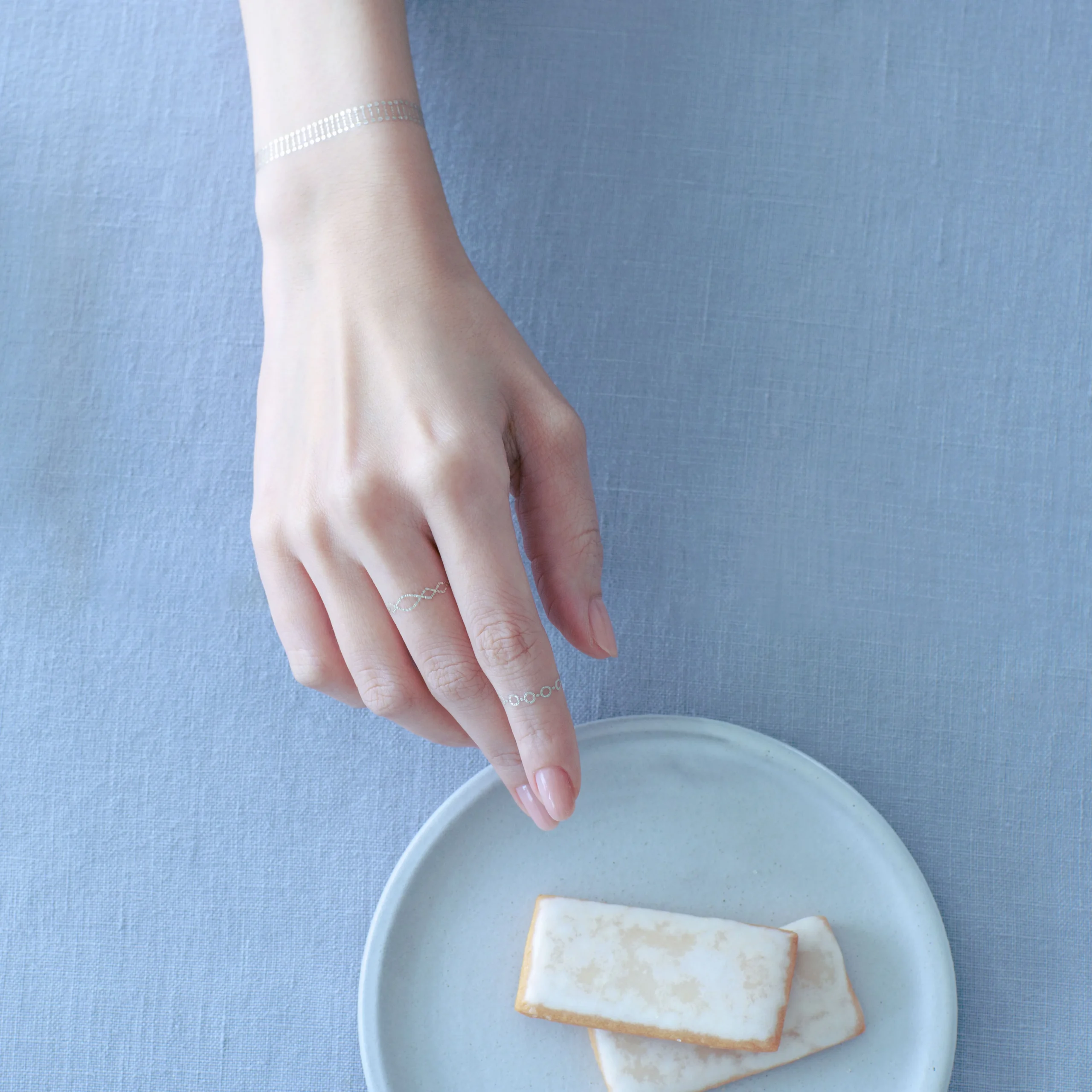 箔と水のアクセサリー HAQUAは、繊細でエレガントなデザインが特徴で、身につけると繊細なきらめきを放ちます。 シンプルなデザインは、ジュエリーの様に季節を問わずオールシーズン使え 白に近いシルバーの色合いは上品でイノセントな印象があります。