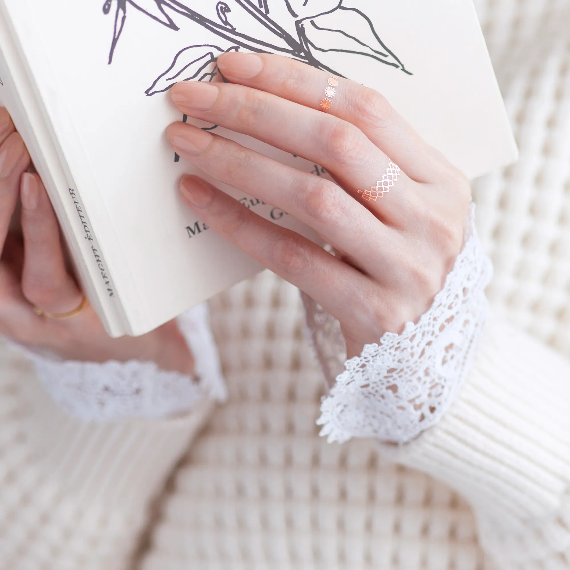 - 約3分間乾燥させてください。3〜5日程度お楽しみ頂けます(個人差がございます)。落とす場合にはアルコールやベビーオイルでやさしく拭き取ります。