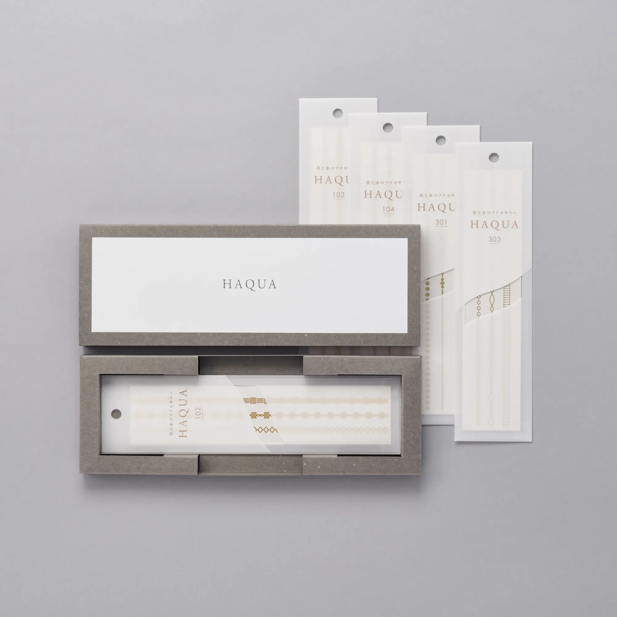 箔と水のアクセサリー HAQUAは、繊細でエレガントなデザインが特徴で、身につけると洗練された輝きを放ちます。